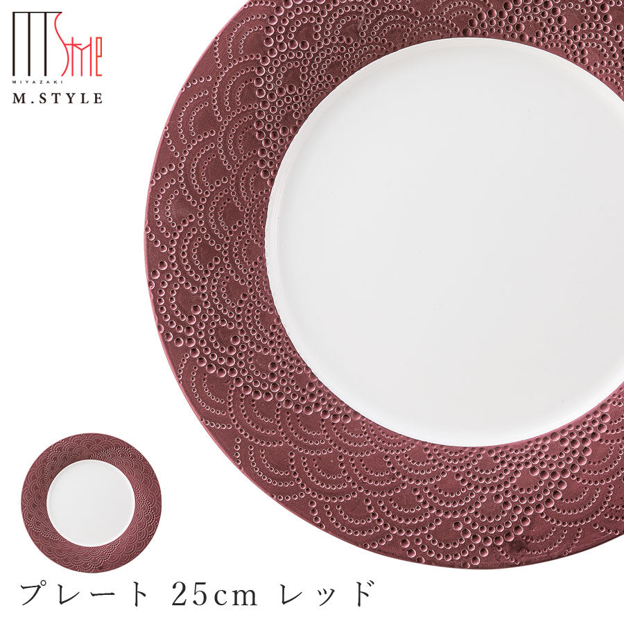 [Magnesia Surge Plate 25cm Red] Large Plate Ceramic Pottery Microwave/Dishwasher Safe Japanese Tableware Western Tableware Luxury Tableware Celebration Reinforced Porcelain M.STYLE Hotel Restaurant Restaurant [Miyazaki Tableware] [Silent]