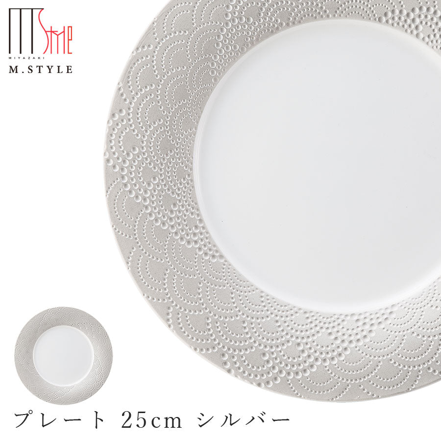 [Magnesia Surge Plate 25cm Silver] Large Plate Ceramic Pottery Microwave/Dishwasher Safe Japanese Tableware Western Tableware Luxury Tableware Celebration Reinforced Porcelain M.STYLE Hotel Restaurant Restaurant [Miyazaki Tableware] [Silent]