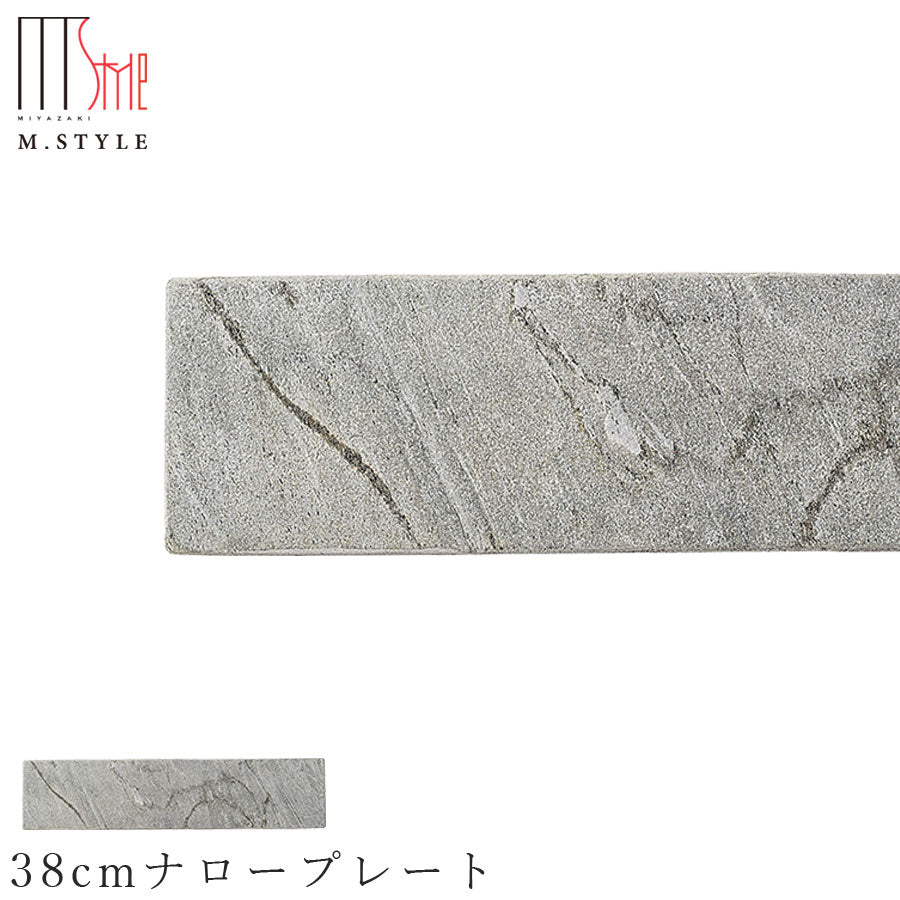 Stone plate [Natural stone silver shine 38cm narrow plate] Sponge processing on the back to prevent scratches Stone tableware Gray Japanese tableware Western tableware Dinner Luxury tableware M.STYLE [Miyazaki tableware] [Silent]