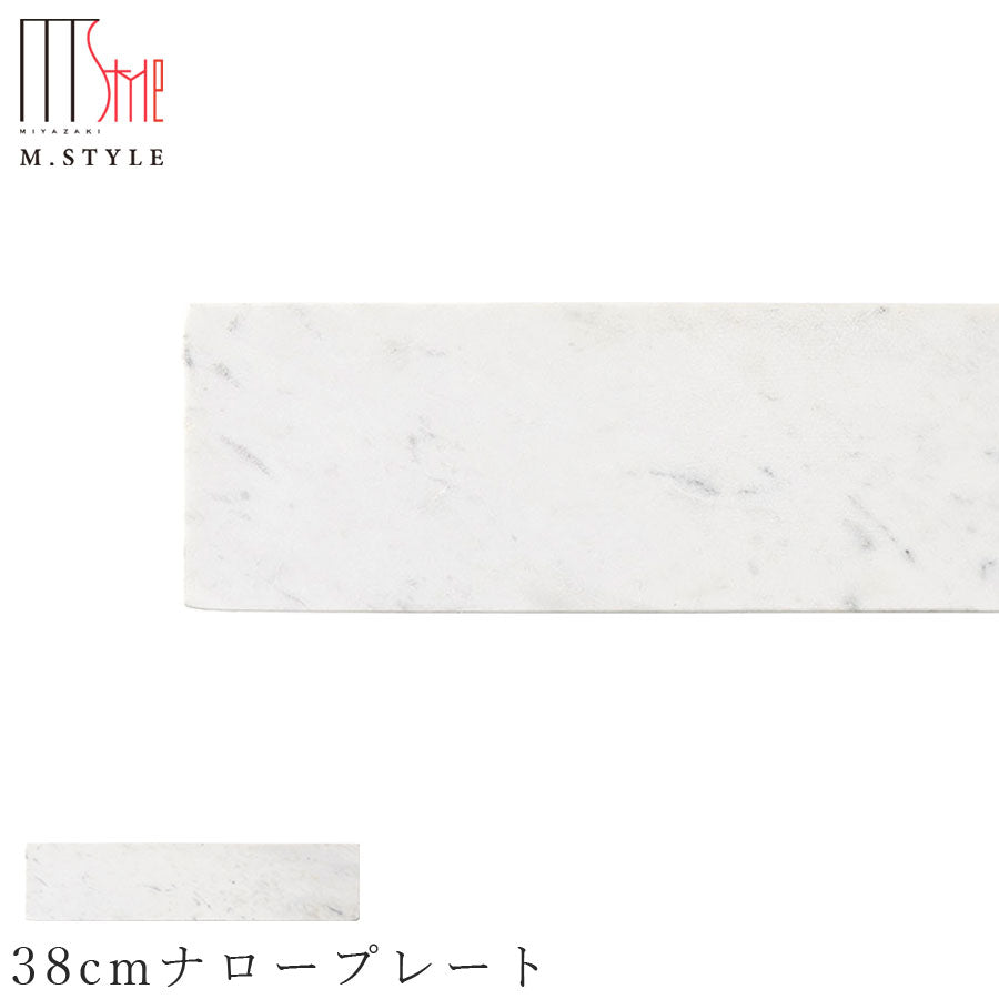 Stone plate [Natural stone white marble 38cm narrow plate] Sponge processing on the back to prevent scratches Stone tableware White Japanese tableware Western tableware Dinner Luxury tableware M.STYLE [Miyazaki tableware] [Silent]