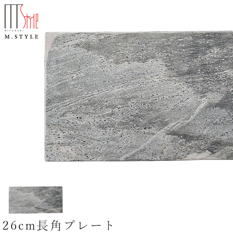 Stone plate [Natural stone Silver Shine 26cm long square plate] Sponge processing on the back to prevent scratches Stone tableware Gray Japanese tableware Western tableware Dinner Luxury tableware M.STYLE [Miyazaki tableware] [Silent]