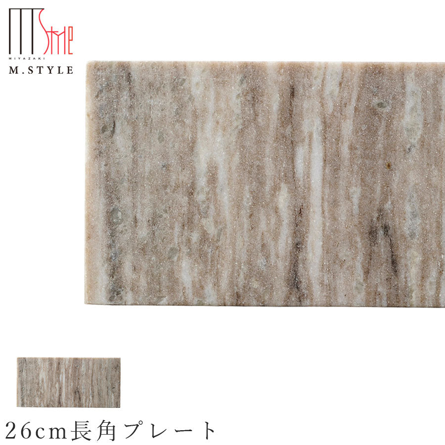 Stone plate [Natural stone beige marble 26cm long square plate] Sponge treated on the back to prevent scratches Stone tableware Japanese tableware Western tableware Luxury tableware M.STYLE Hotel Restaurant Restaurant [Miyazaki Tableware] [Silent]