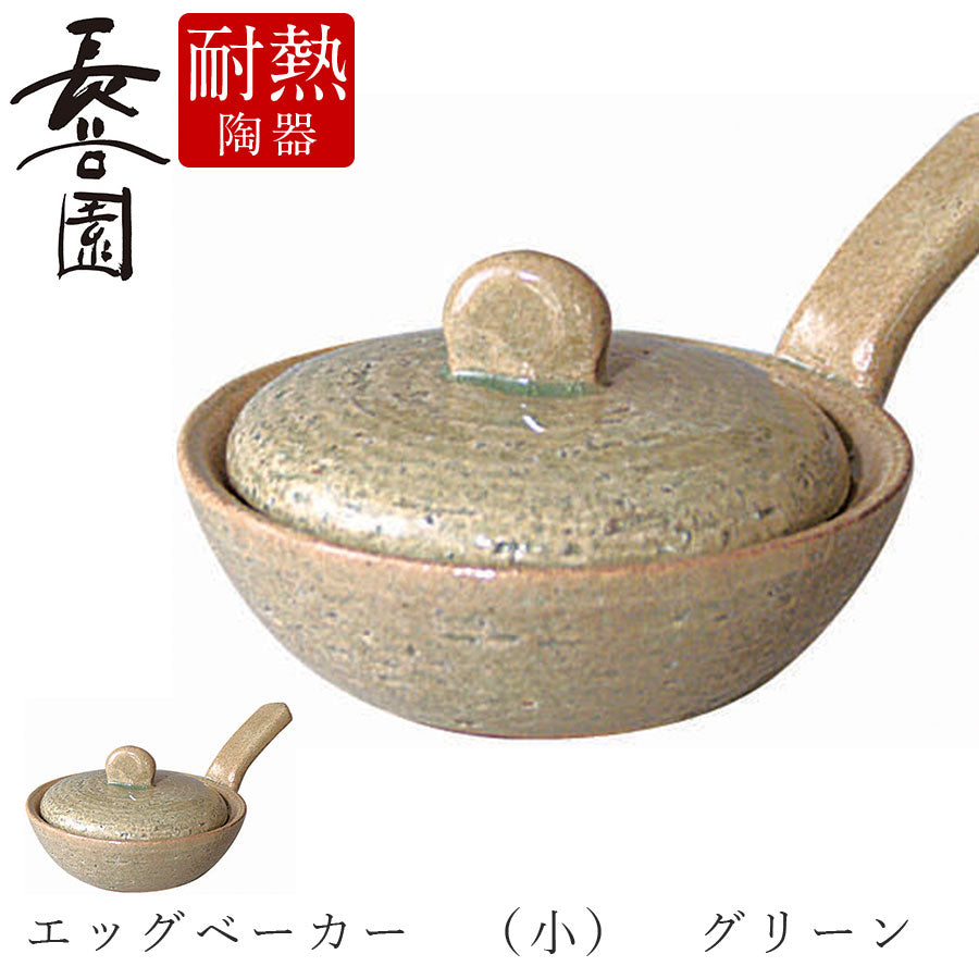 Hasenen Heat Resistant Plate [Egg Baker (Small) Green] Includes Recipe, Open Fire, Oven Safe, Microwave OK, Pottery, Pottery, Made in Japan, Japanese Tableware, Luxury Tableware, M.STYLE [Miyazaki Tableware] [Silent]
