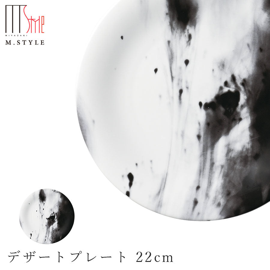 Round Plate [SPAL Flume Dessert Plate 22cm (Black) Black] Marble Pattern Pottery Pottery Microwave/Dishwasher Safe Japanese Tableware Western Tableware Dinner Made in Portugal Luxury Tableware M.STYLE [Miyazaki Tableware] [Silent]