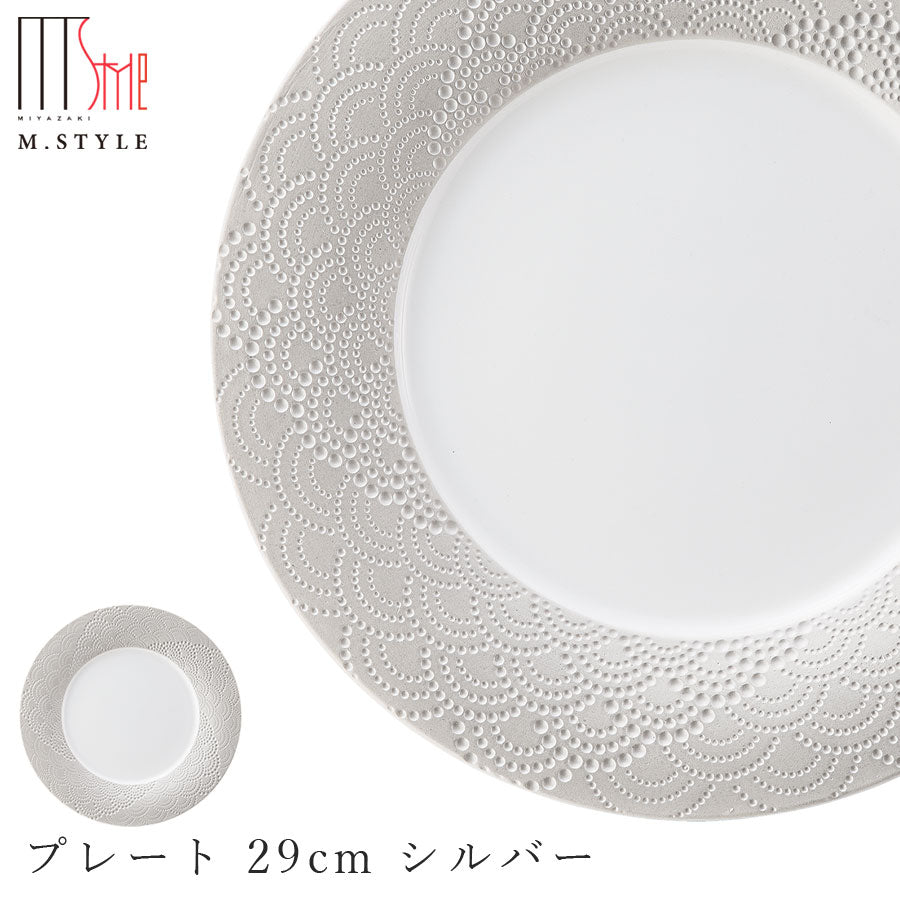 [Magnesia Surge Plate 29cm Silver] Large Plate Ceramic Pottery Microwave/Dishwasher Safe Japanese Tableware Western Tableware Luxury Tableware Celebration Reinforced Porcelain M.STYLE Hotel Restaurant Restaurant [Miyazaki Tableware] [Silent]
