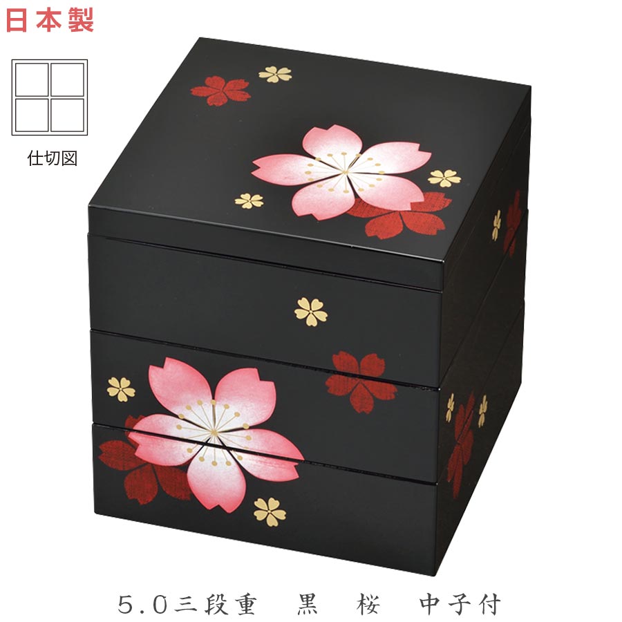 Heavy box 3 tiers 2500ml [5.0 3 tiers heavy black cherry blossom with core] Japanese style lunch box New Year's Day Made in Japan Picnic Sports Day Excursion Outdoor Women Men Gift Present #ju01 [Miyamoto Sangyo] [Silent]