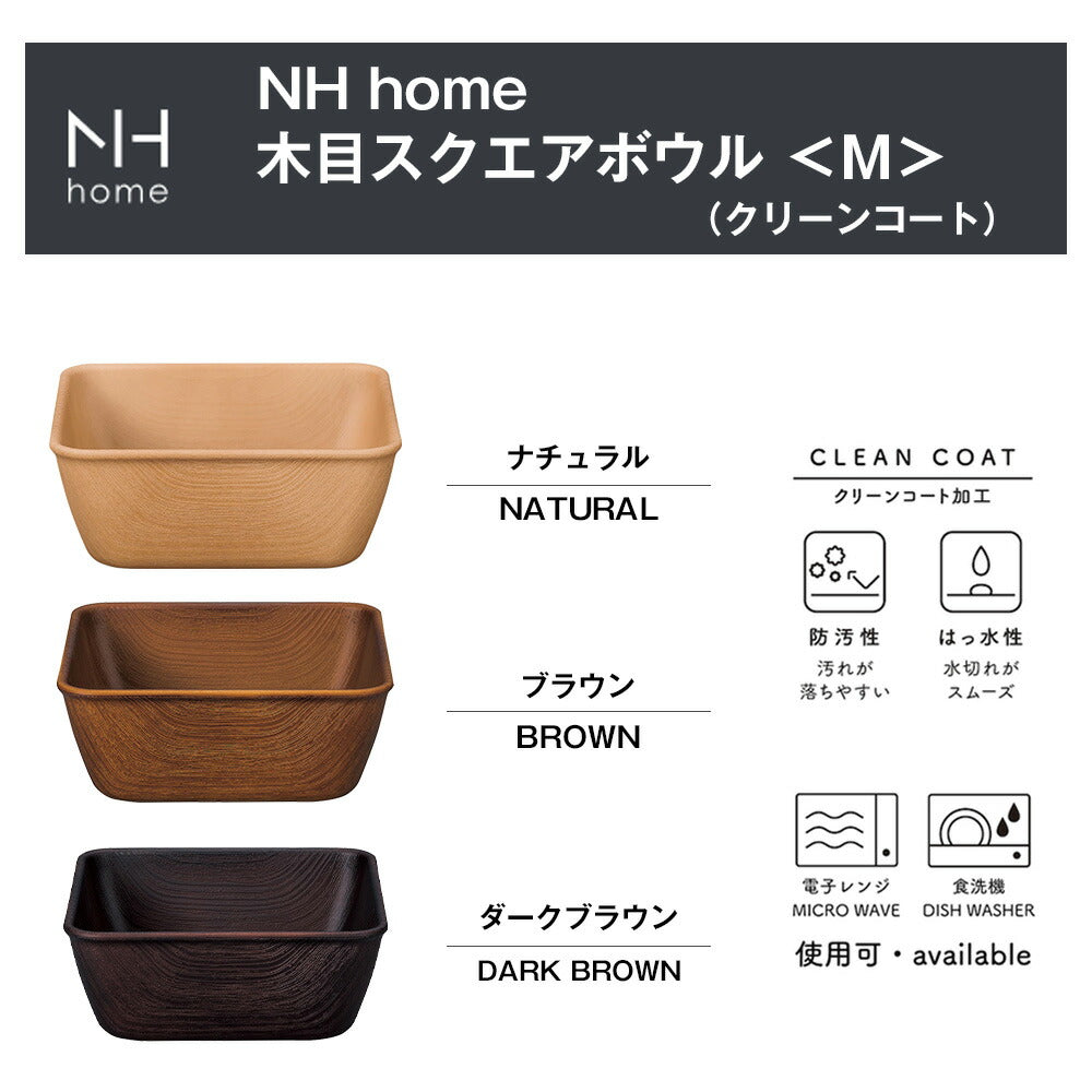 [NH home Wood Grain Square Bowl (M) CC] Tableware Stylish Adult Cute Present Made in Japan [Masakazu] [Silent]