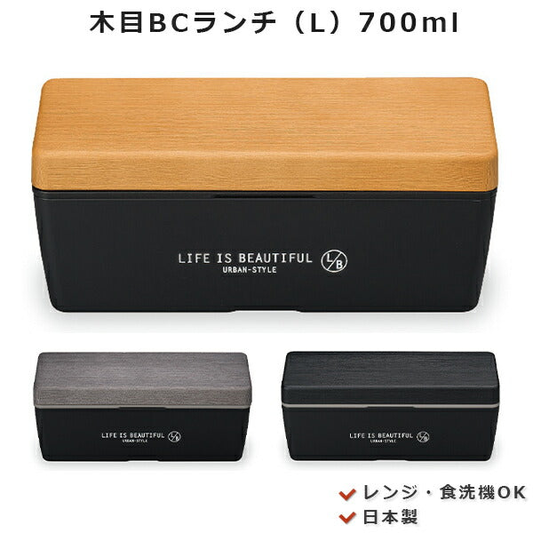 [Free Shipping] Bento Box 1 Tier [L/B Wood Grain BC Lunch L] [LIFE IS BEAUTIFUL URBAN-STYLE] Stylish and Slim Bento Box Somen Bento Rectangle [Masakazu] [Silent]