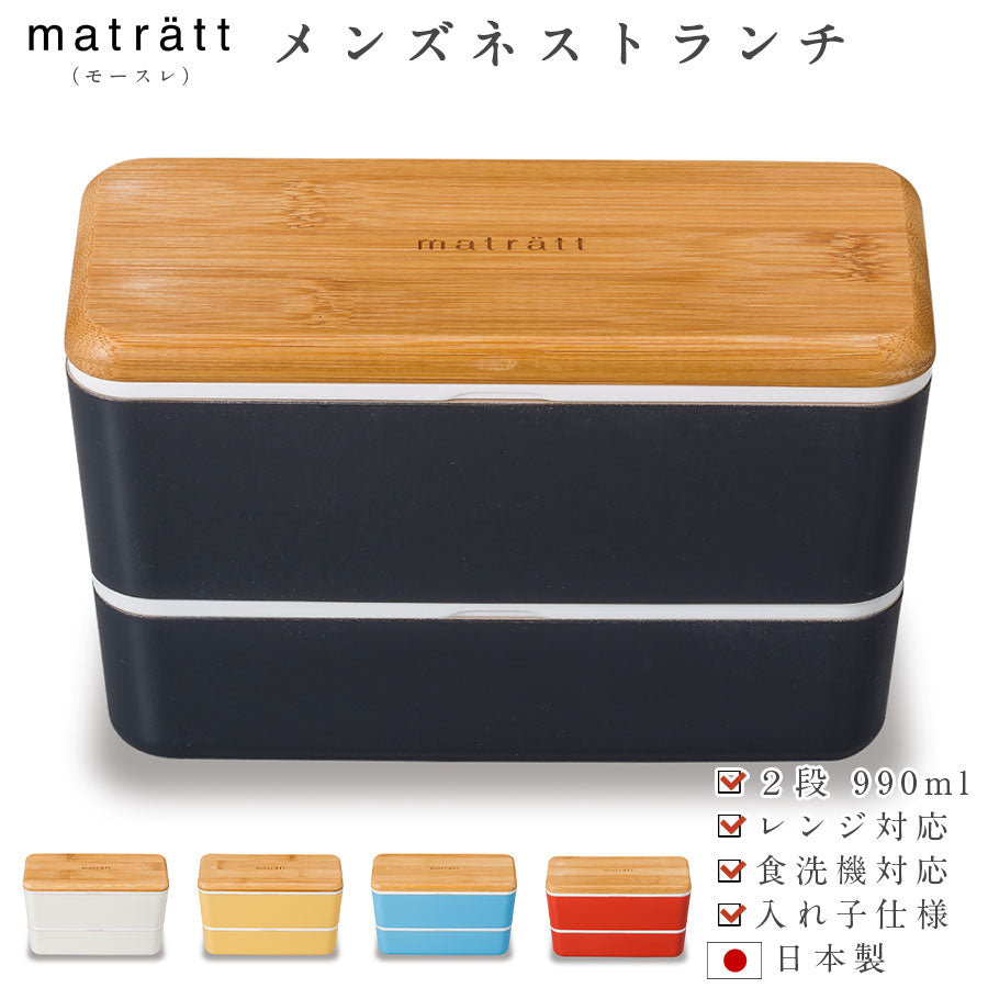 Men's lunch box 2 tiers [matratt Men's Nest Lunch] Large capacity 990ml Lunch box Domestic product Made in Japan Men's Dishwasher safe Microwave safe Antibacterial treated #msr1 [Masakazu] [Silent]