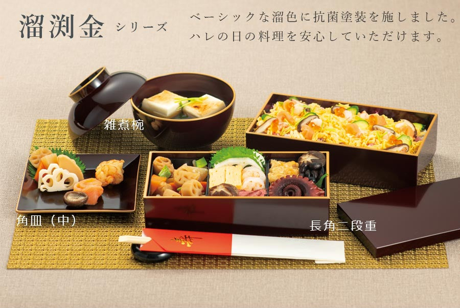 Long angle box, 2 tiers, 1900ml [Tamebuchikin long angle, 2 tiers] Antibacterial treatment, synthetic lacquerware, made in Japan, Yamanaka lacquerware [Miyamoto Sangyo] [Silent]