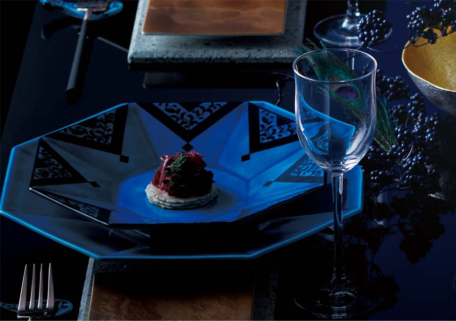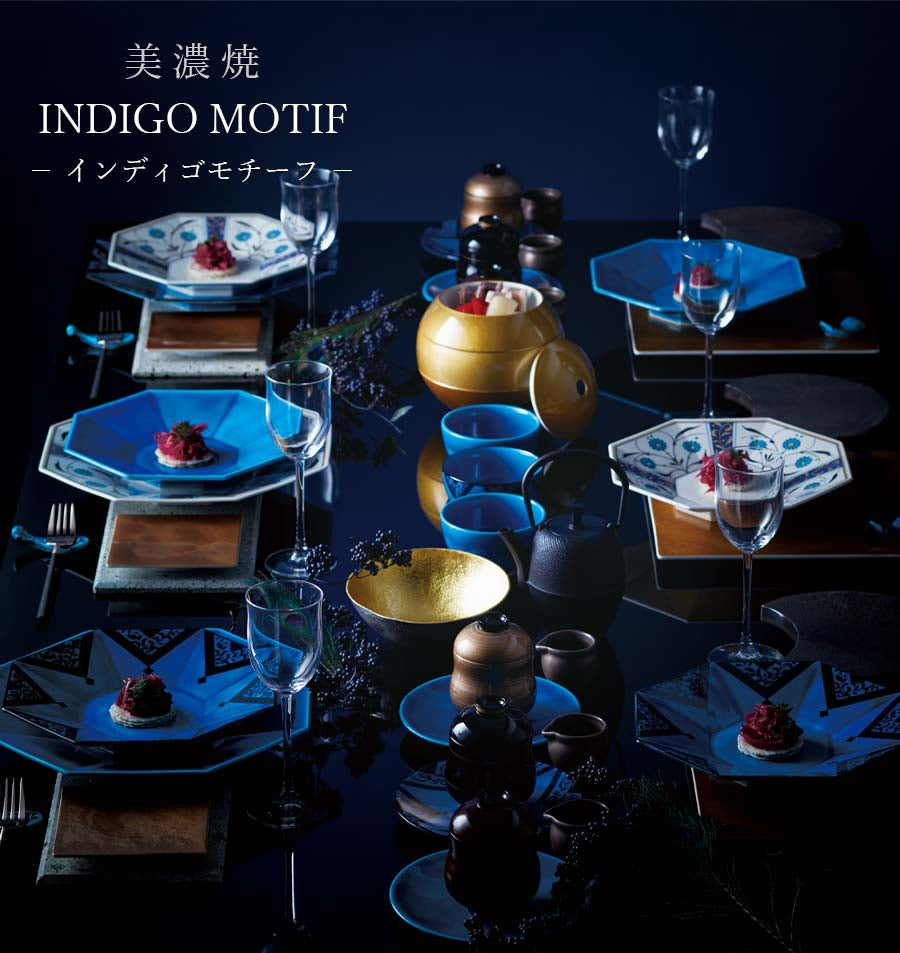 "Indigo Motif" is a tableware series created by Gifu Prefecture, Mino ware, and Kobeigama.