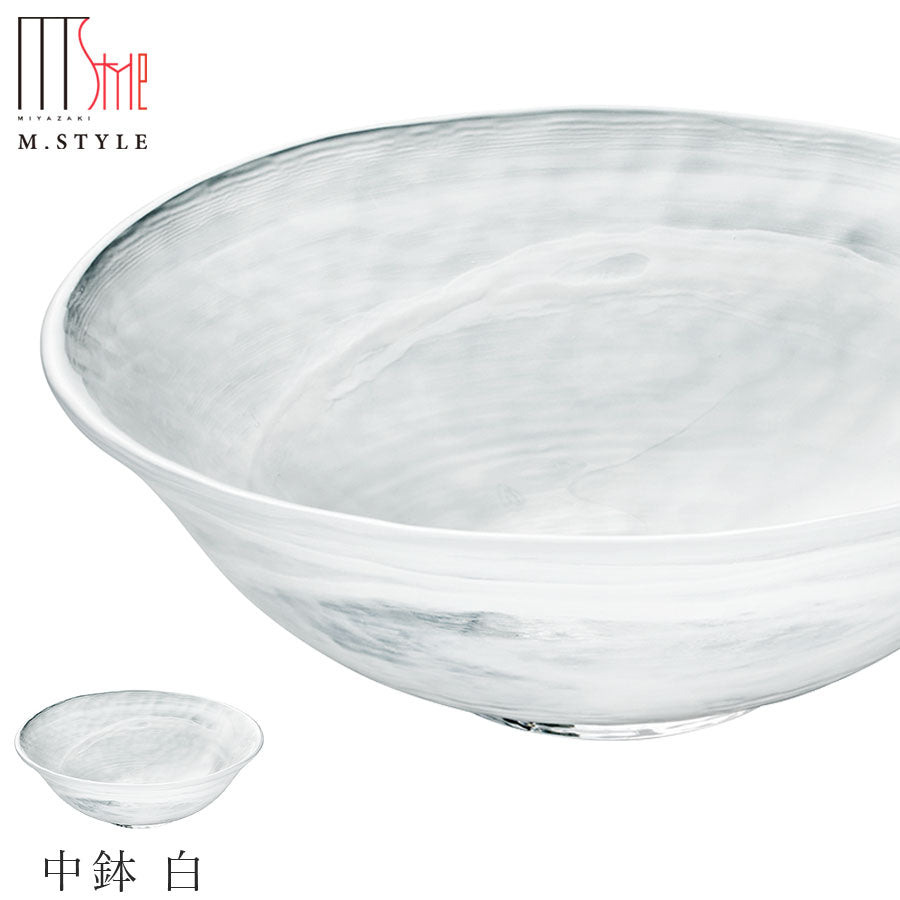 Glass Plate [Ink Medium Bowl White] Japanese Tableware Western Tableware Made in Japan Dinner Luxury Tableware M.STYLE Hotel Restaurant Restaurant [Miyazaki Tableware] [Silent]
