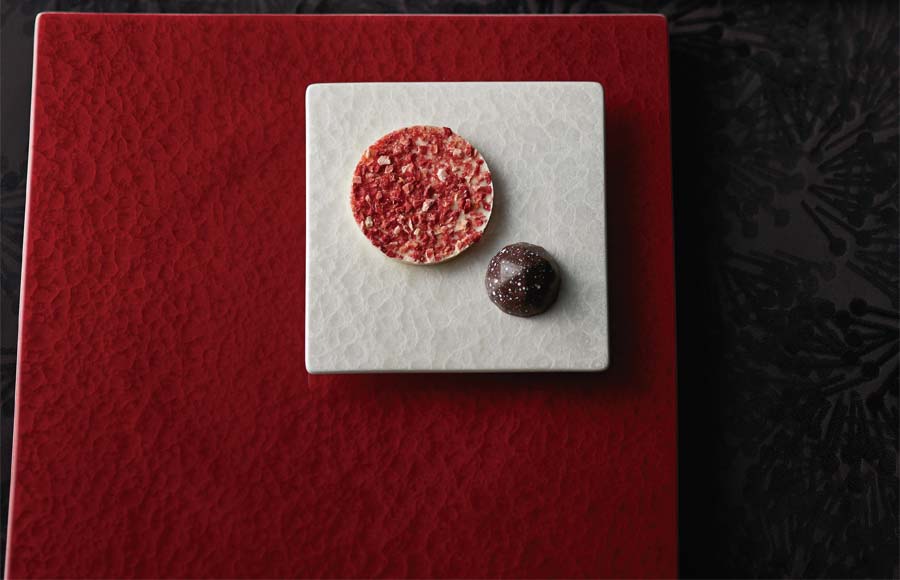 [Urushi stone (lacquer) square tray 19cm/Zuiun (gold)]