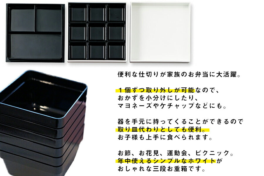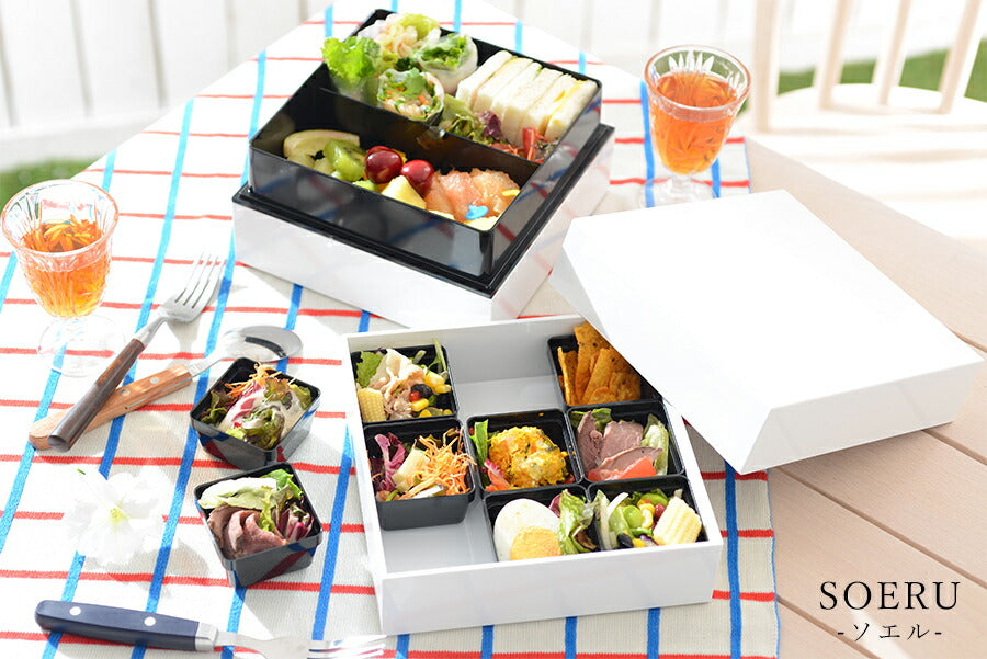 The simple designed heavy lunch box is very convenient as it can be used anywhere throughout the year, whether it's for New Year's dishes, for vacations such as viewing autumn leaves or cherry blossoms, or for outdoor activities such as sports days, camping, and picnics.