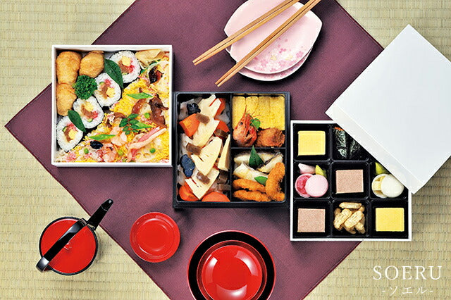 The pure white and stylish jubako gives it a clean feel and makes your lunch box taste delicious.