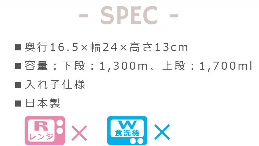■Capacity: Lower tier: 1,300m, Upper tier: 1,700ml