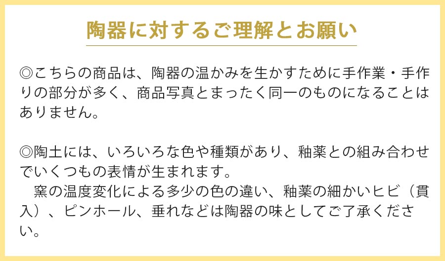 Please be sure to read the "Understanding and Requests for Ceramics" on the product page.