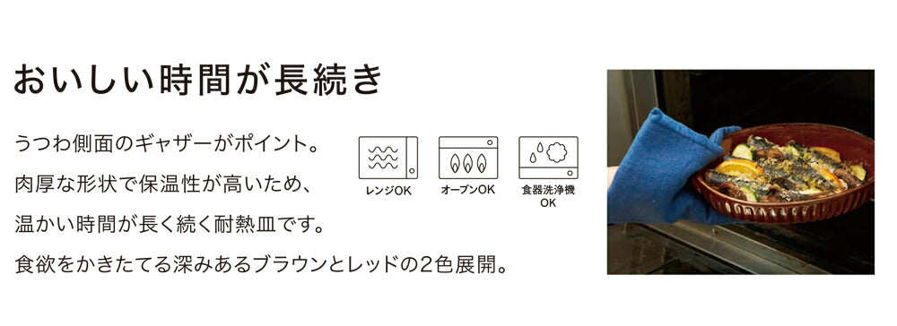 It is a heat-resistant dish that stays warm for a long time because of its thick shape and high heat retention.