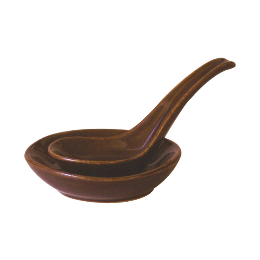 【小レンゲ アメ釉 小レンゲ(皿付)(ブラウン)】