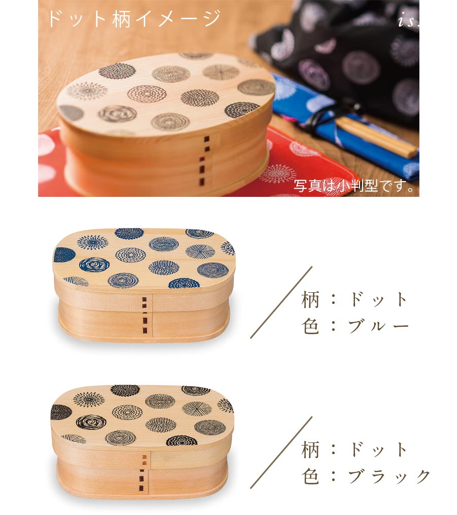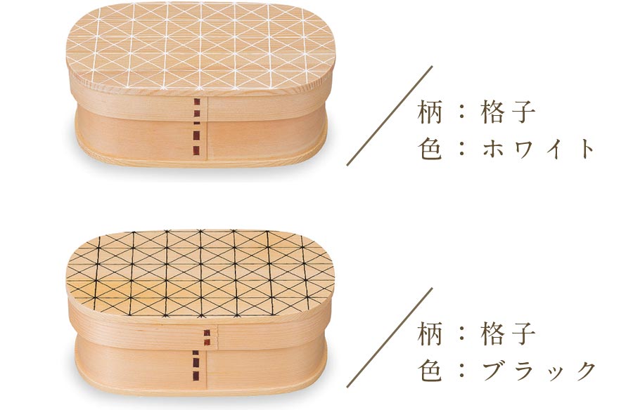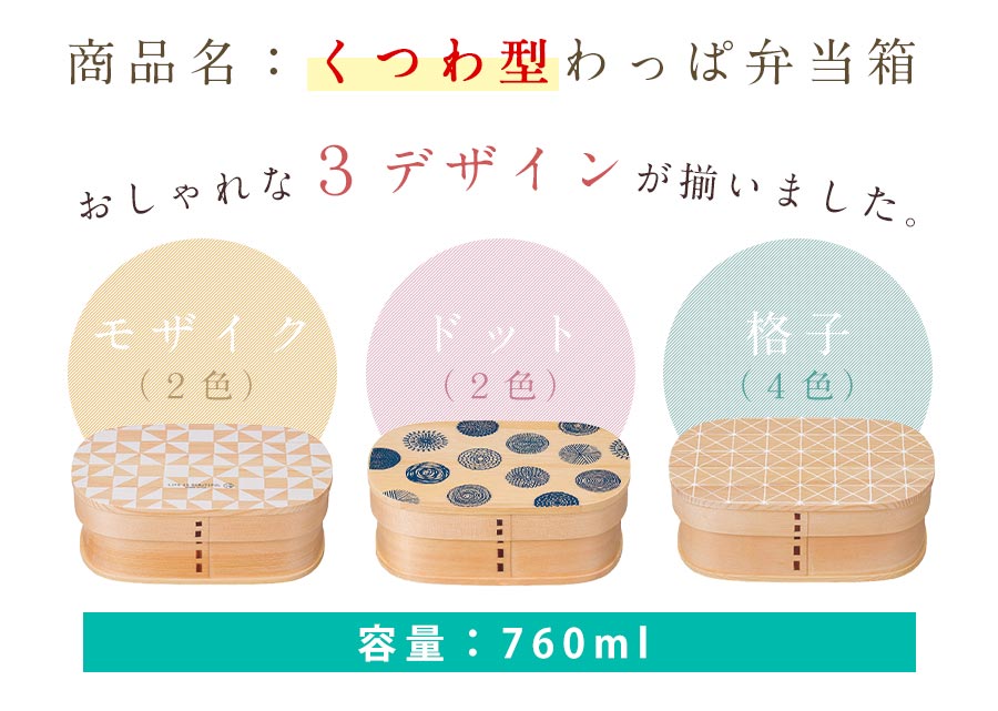 そこにおしゃれな柄がほどこされた、最新のわっぱ弁当です。