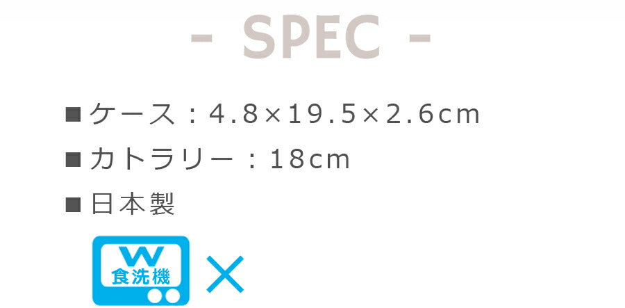 ■(サイズ)ケース:4.8×19.5×2.6cm、カトラリー:18cm