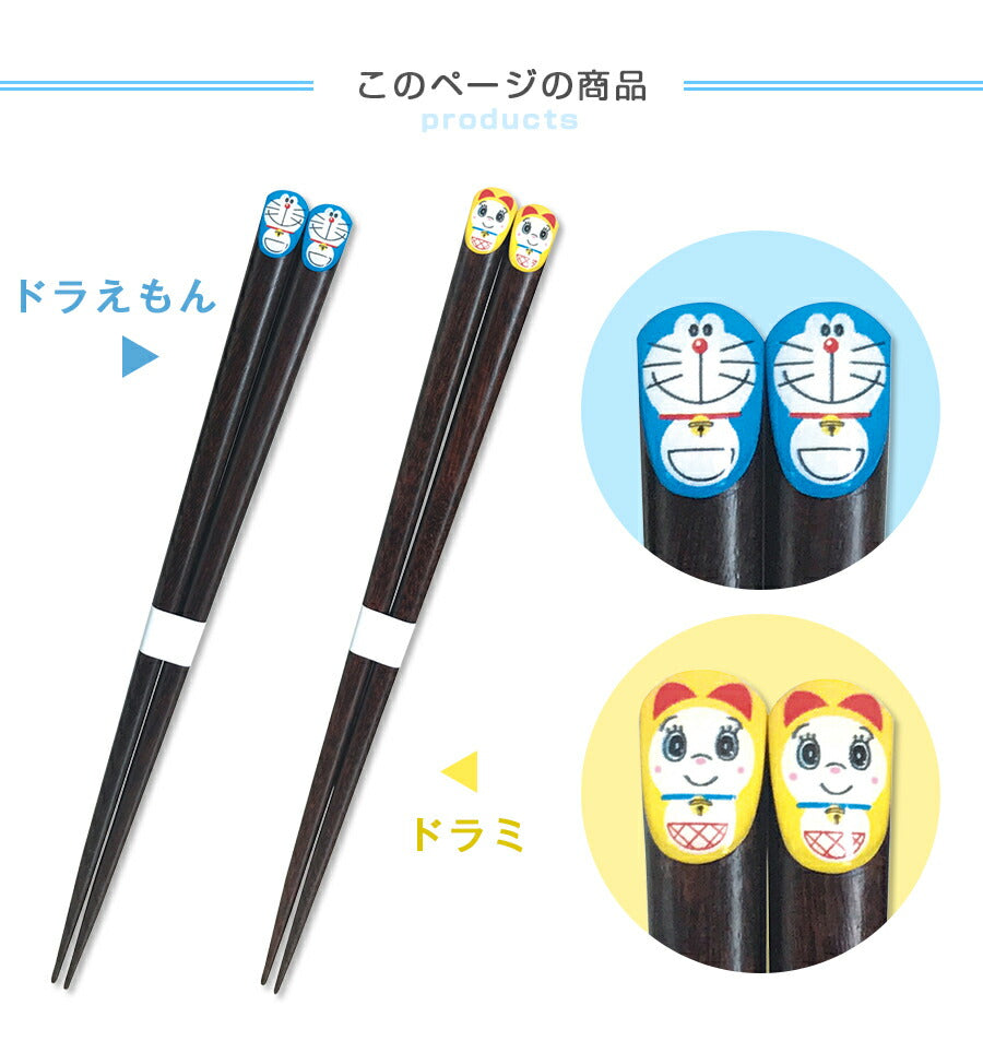 ドラえもん・ドラミちゃん【塗箸】お子様から大人まで大人気のドラえもんのお箸です。ドラえもんブルーとドラミイエローが楽しくてかわいいですね。また、国産というのもうれしいポイントです。 お友達やご家族へのプレゼントやギフトにいかがでしょうか。