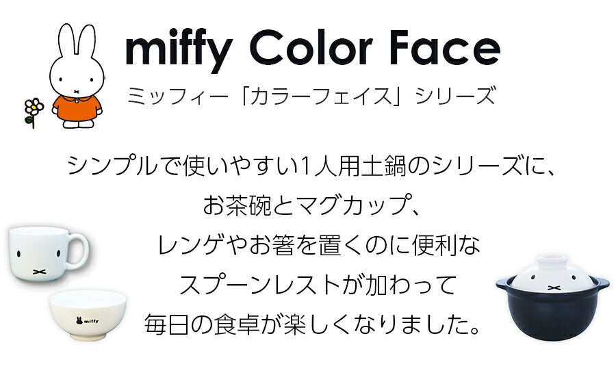 白地の食器に、ミッフィーのフェイスがシンプルかつ大胆にデザインされた、かわいい食器シリーズです。