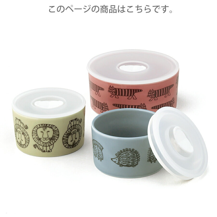 猫やライオン、ハリネズミなど、かわいい動物たちが描かれた保存容器で、普段使いはもちろんのこと、化粧箱入りなのでプレゼントにもおすすめです。