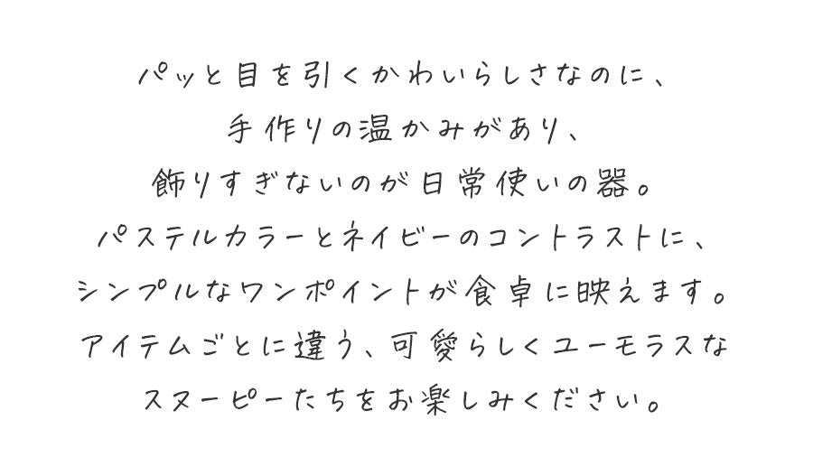アイテムごとに違う、可愛らしくユーモラスなスヌーピーたちをお楽しみください。